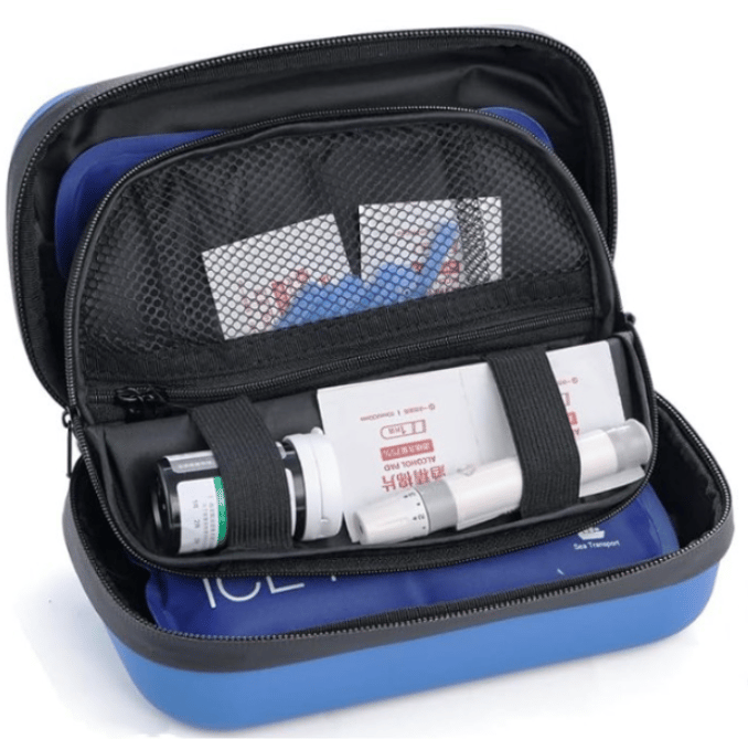 حافظة تبريد انسولين 12 ساعة للسفر معتمدة، مبرد أدوية لمرضى السكري مع ميزان حرارة وشنطة منظمة.