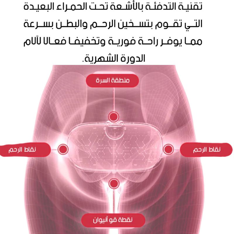 تعرفي على حزام تخفيف آلام الدورة الشهرية بالتدفئة والتدليك، الحل المثالي لراحة مثالية في أيام الدورة. يتميز بثلاث سرعات للتدفئة و4 مستويات للتدليك،